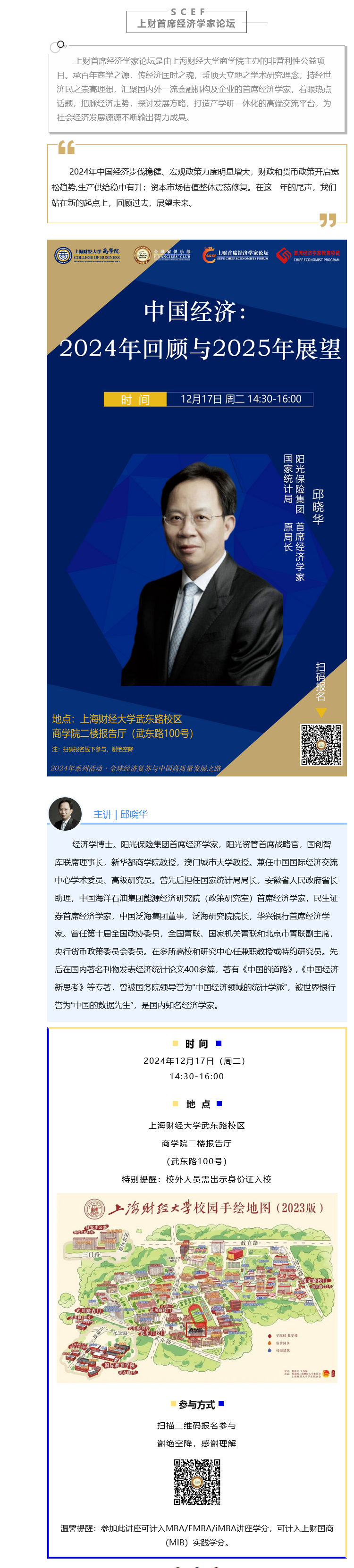 线下活动 | 上财首席经济学家论坛·12/17 邱晓华·中国经济:2024年回顾与2025年展望