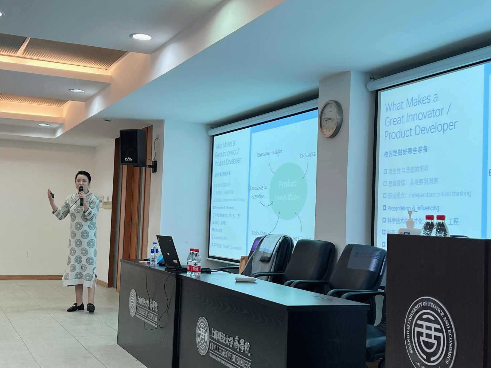 首先,朱雯校友向大家分享了自己曾经在广告公司工作的经历与心得,她表示许多非传统行业中也存在了大量机会,非常有利于同学们能力的提升。其次,朱雯校友从自身出发,向大家讲述了在消费品行业,好的产品开发经理应具有的能力,拓宽了同学们的眼界。最后,同学们争相向校友提问,大家进行了深入的分析与讨论,同学们都获益匪浅。