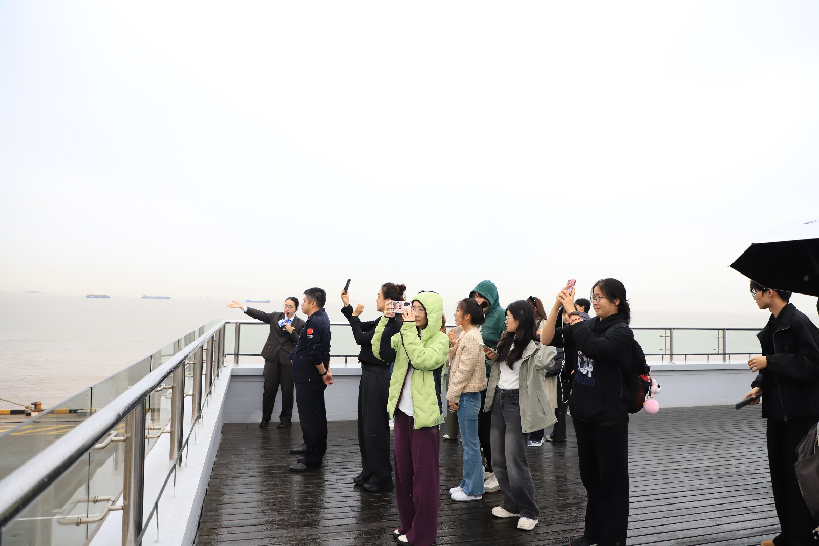 最后,大家来到洋山出入境边防检查站小洋山岛执勤点,在边检站工作人员的带领下,大家参观了现代化的查验设施,了解了边检工作的流程和重要性。从信息化的检查监管体系,到严格的证件审查流程,每一步都体现了国家对出入境管理工作的严谨与高效。
