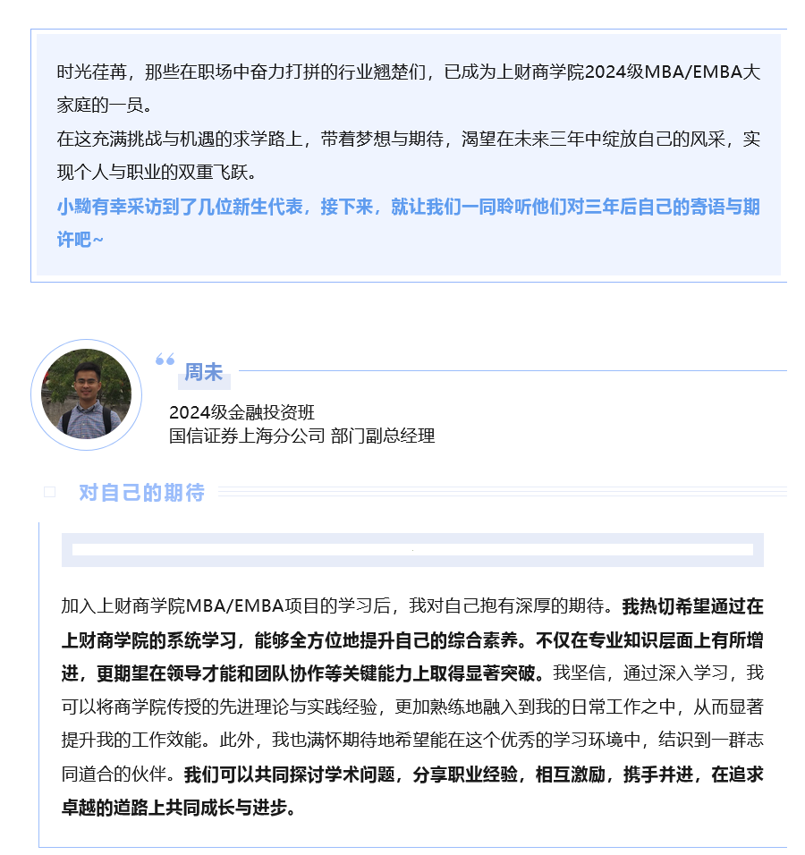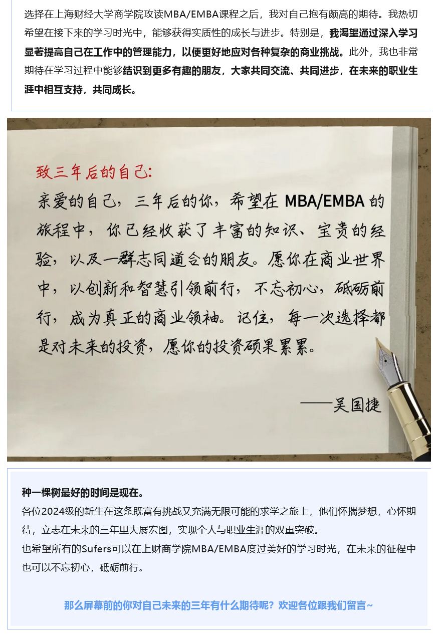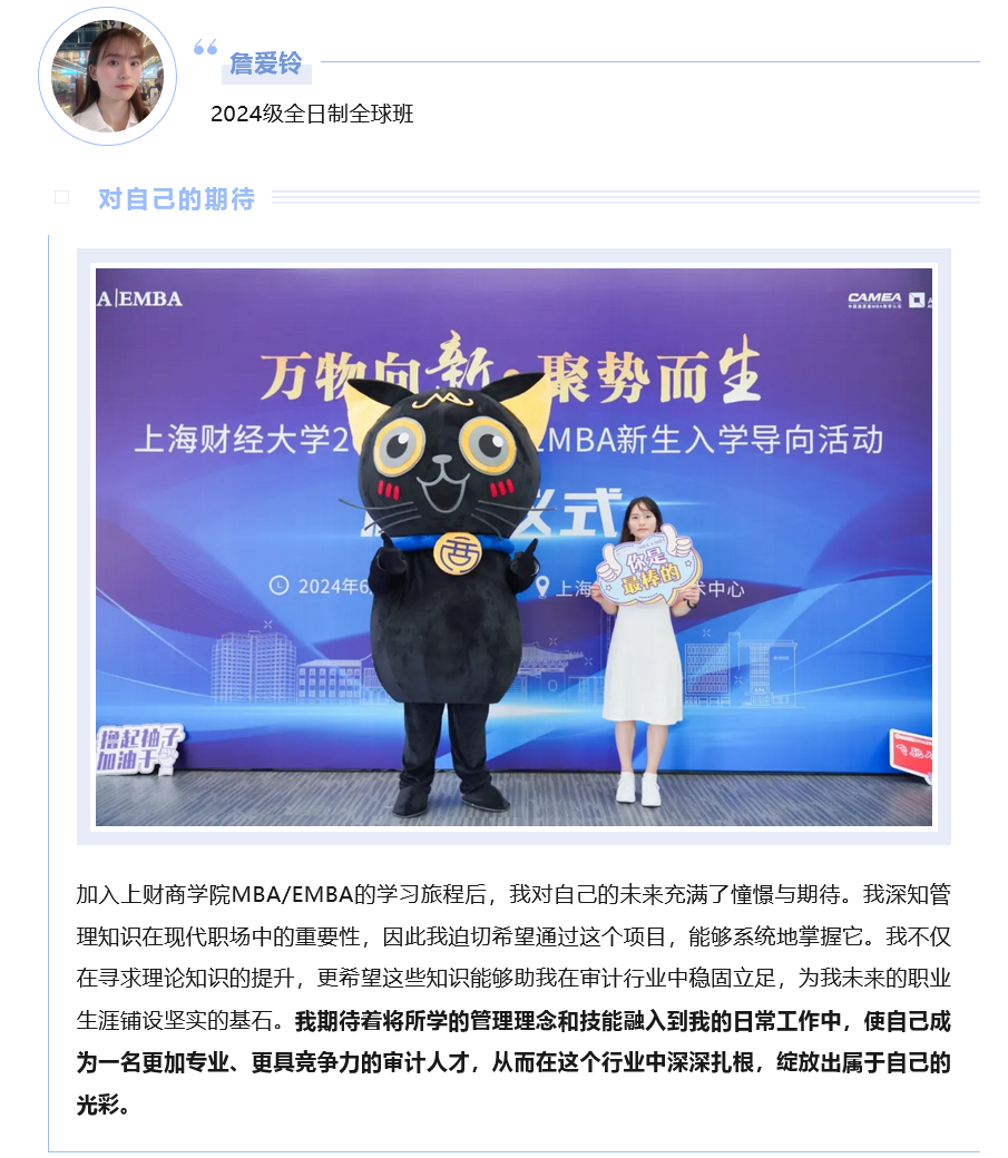 致三年后的自己丨上财商学院2024级MBA/EMBA新生风采