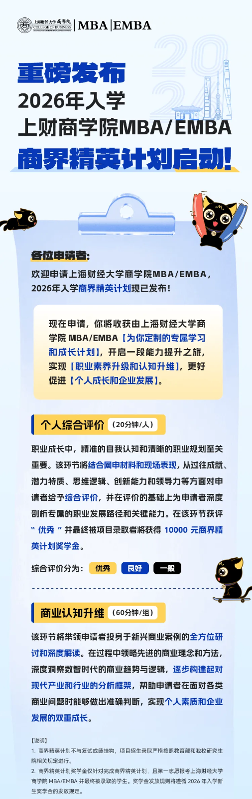 重磅发布!2026年入学上财商学院MBA/EMBA商界精英计划启动