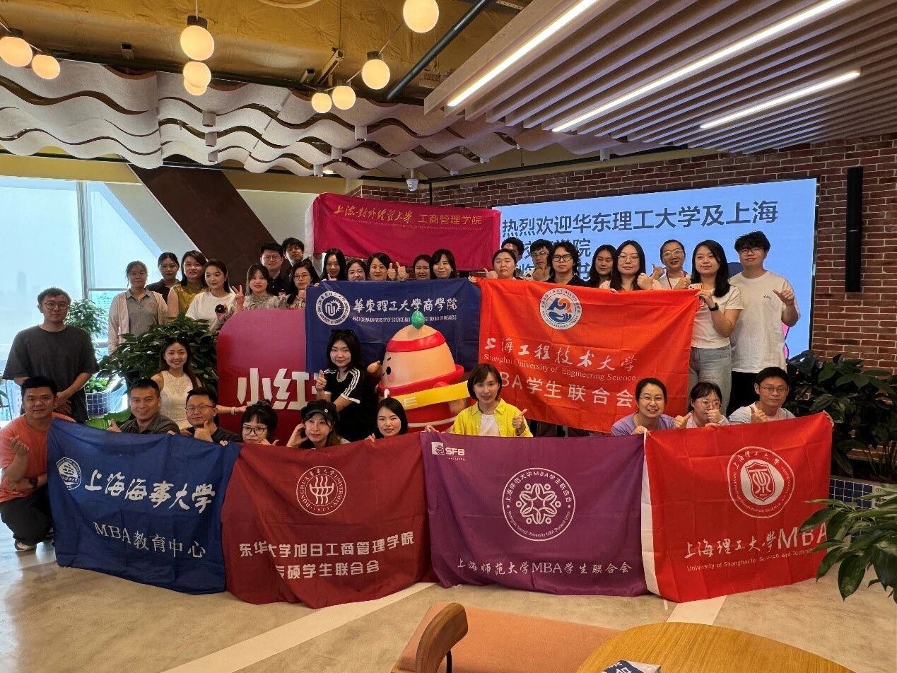 5 月 19 日下午,由华东理工大学商学院MBA学联主办的 “沪上高校商学院小红书参访活动” 在上海总部圆满落幕。上海财经大学商学院MBA学联代表与来自华东理工大学、上海理工大学、东华大学、上海海事大学、上海师范大学等多所高校的师生代表组成联合参访团,共同走进这座充满年轻活力的互联网地标,深度解锁小红书的创新基因与 “种草经济” 的底层逻辑。