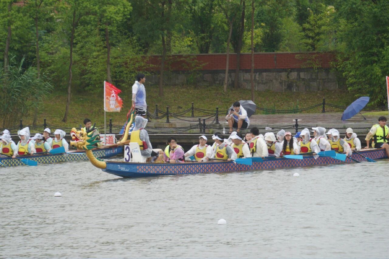 大雨之下,衣服早已湿透,眼镜模糊一片,龙舟却越划越快,笑声在江面回荡。每一次整齐的下桨,每一个奋力的呐喊,都是团魂的注解。