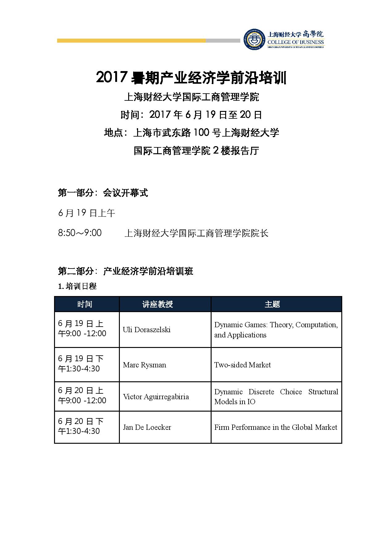 2017 暑期产业经济学前沿培训